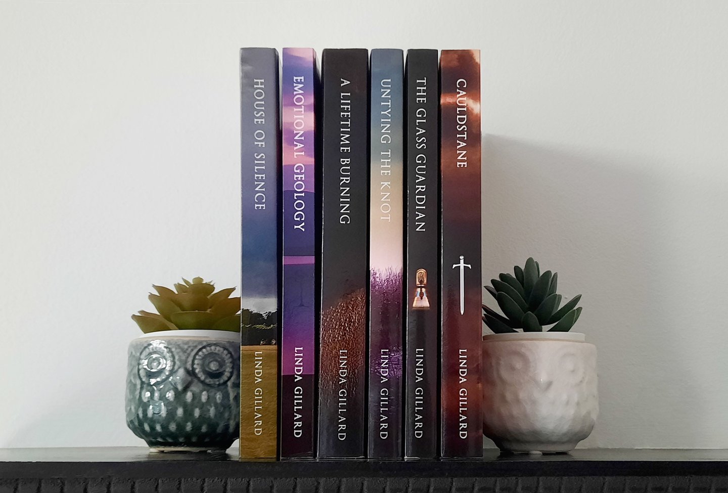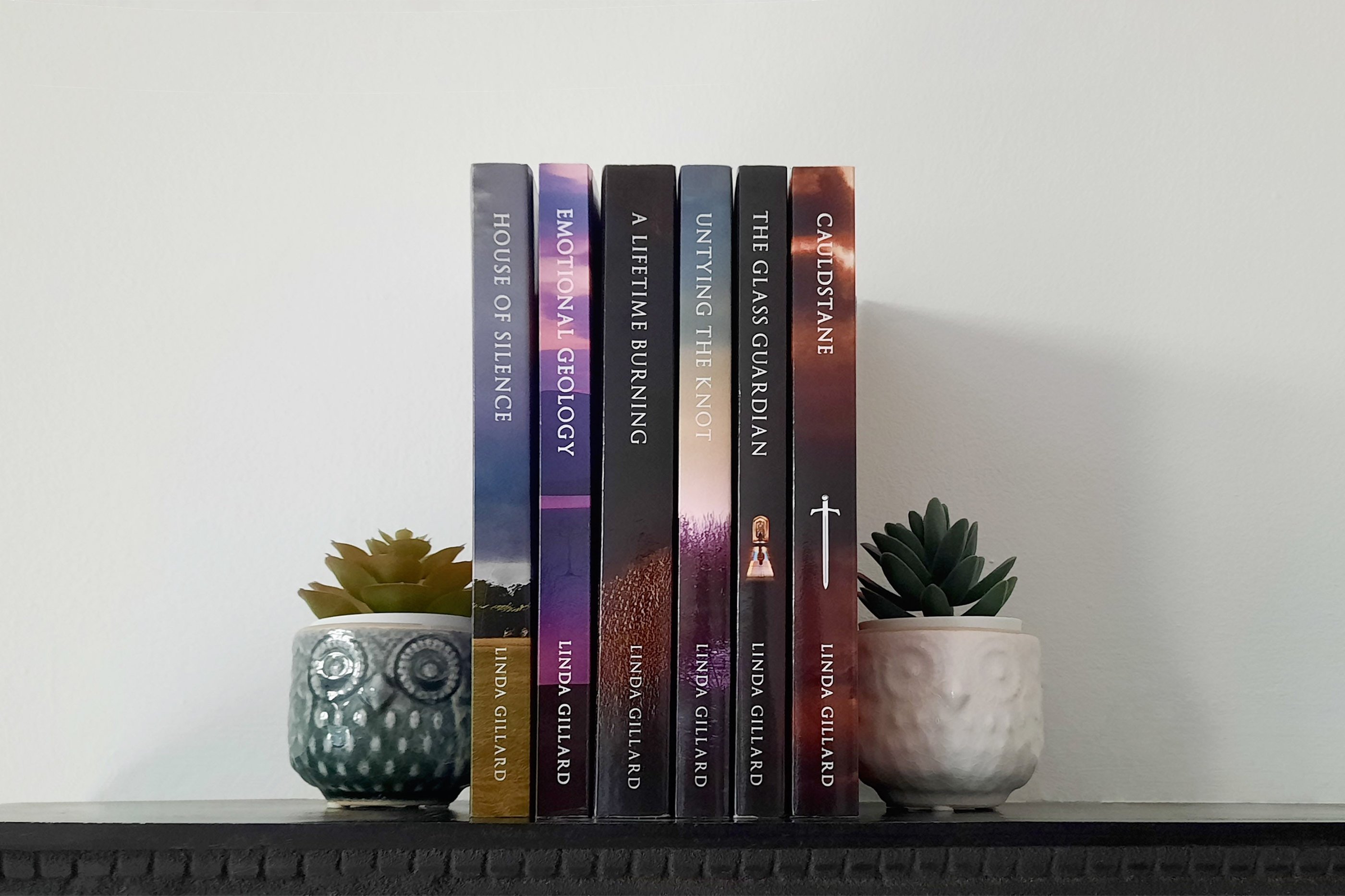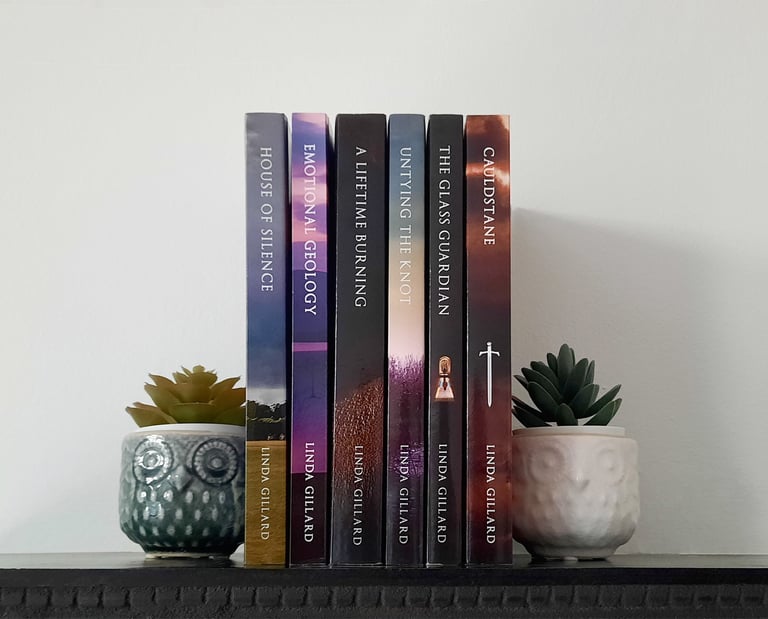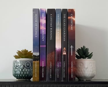I designed six covers for independent author Linda Gillard. At first the covers were meant solely for e-books , but Linda's readers were keen for print versions as well. For Emotional Geology and A Lifetime Burning this meant expanding the original images to wraparound the full book jacket - all done before generative AI, may I add! I hugely enjoyed working with Linda to adapt her cover images to reflect her stories, and also making sure all of the spine text lined up perfectly - publishers, take note!