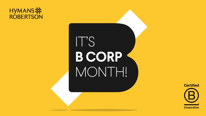 Hymans Robertson became a certified B Corp in 2023. Each year B Corp invites members to celebrate 'B Corp Month' and releases a new visual brand kit each year. Below are some examples of how I brought Hymans' visual identity, and the annual B Corp brand kits together. Top, an animation created for B Corp Month 2025, middle a social media carousel for B Corp Month 2024, and bottom our own B Corp pop up banners which travel to various events.