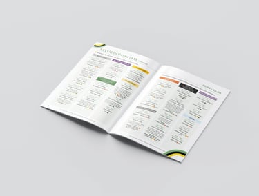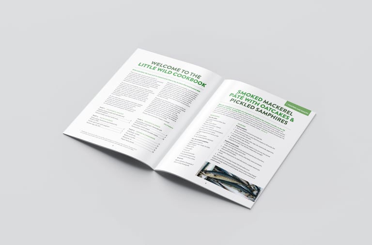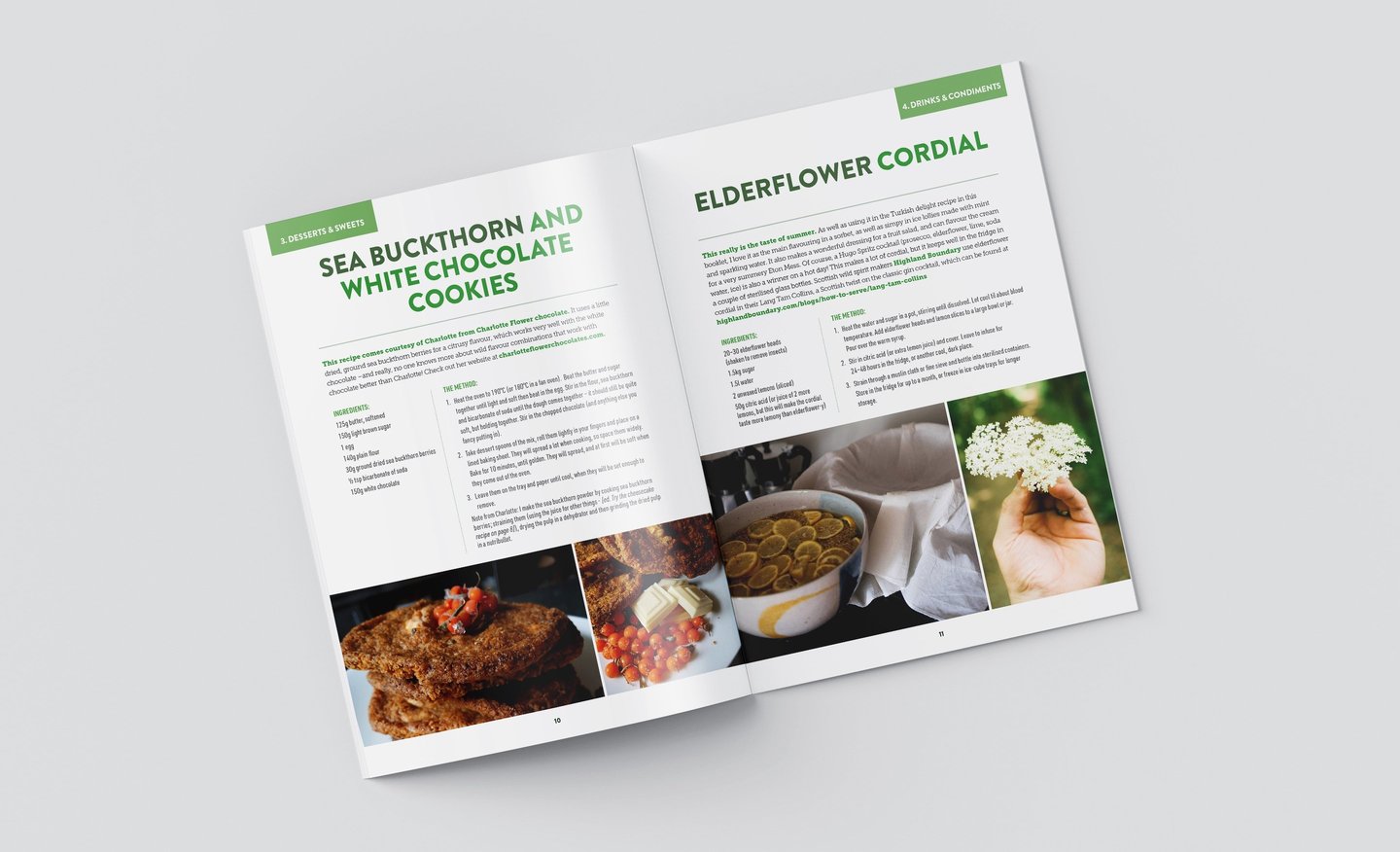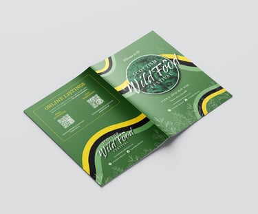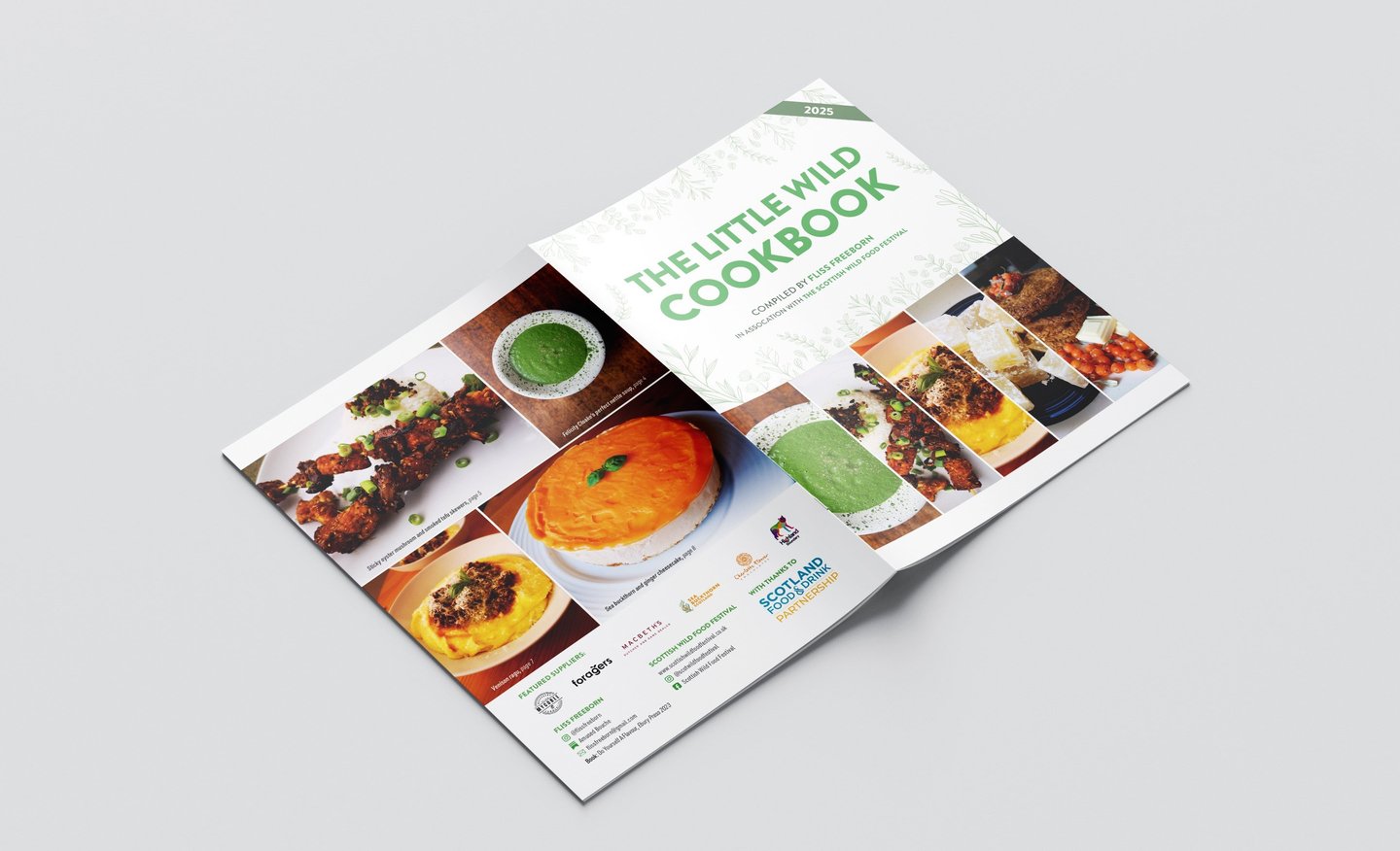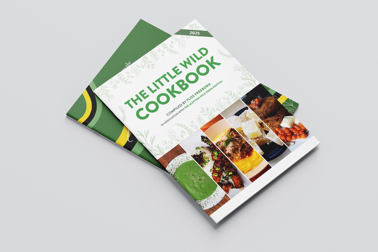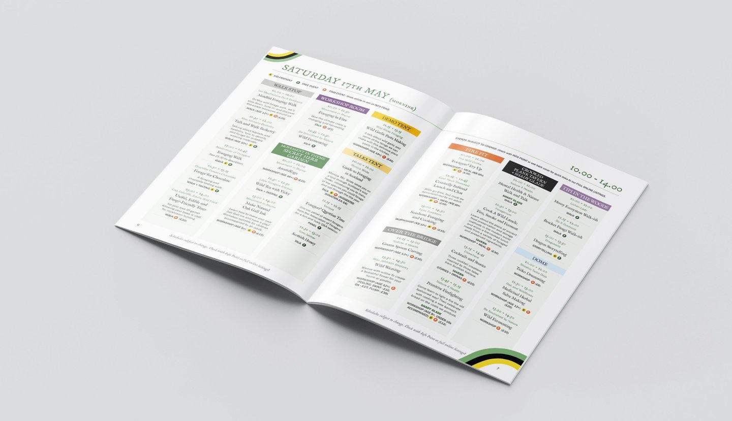 I've designed three festival programmes for the Scottish Wild Food Festival, a celebration of wild food foraging and cooking that takes place every year, about 40 miles outside Glasgow. In 2024 the brief expanded to include The Little Wild Cookbook, featuring wild food recipes from noted wild food chefs. The design for the 2025 programme was inspired by the bold yellow, black and green stripes the Festival had already established in their social media. The big challenge is keeping on top of the fast moving list of vendors and demonstrators, as the festival always has a packed schedule.